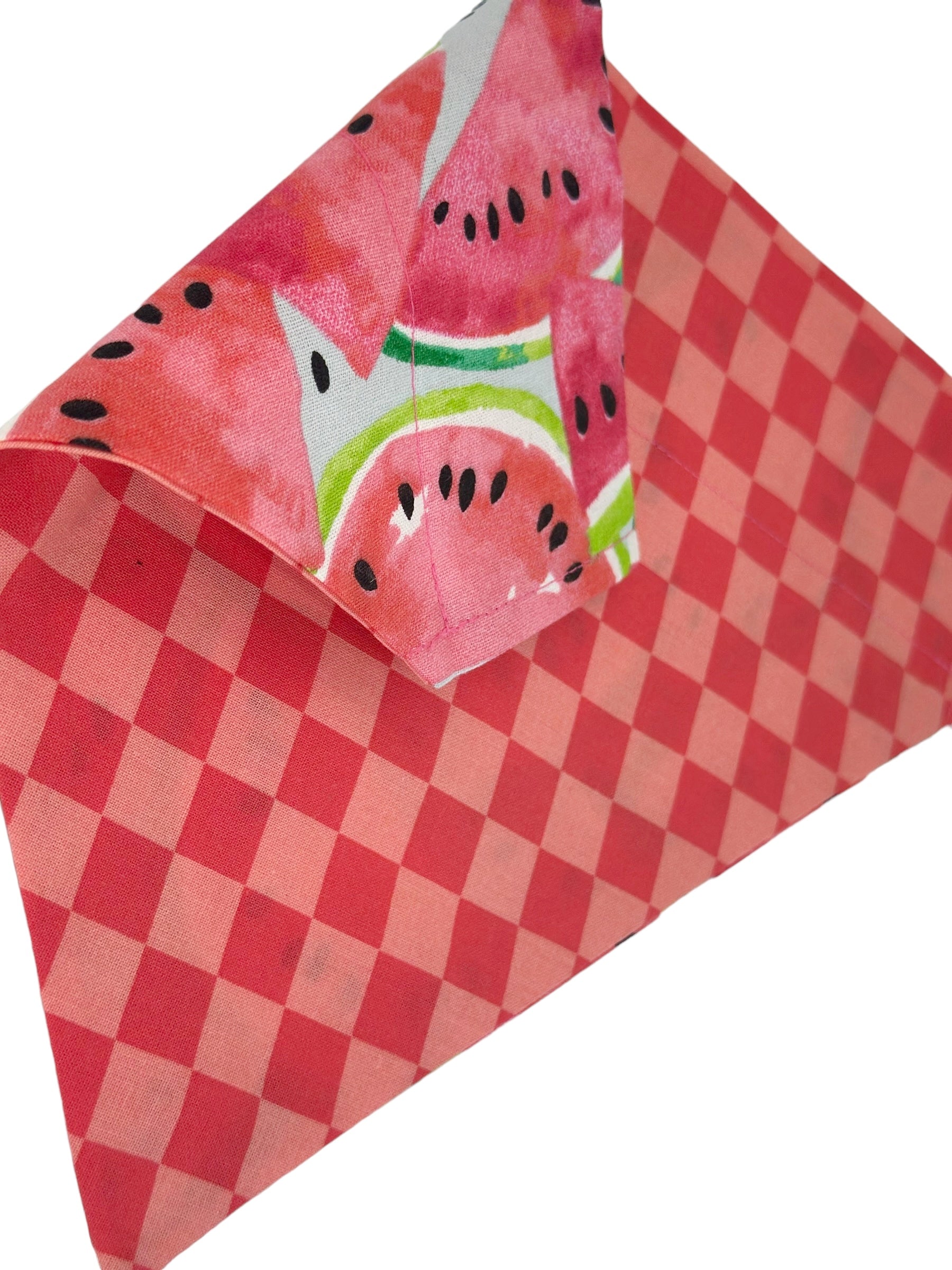 Watermelon and Pink Picnic Handmade Reversible Slip-on Bandana