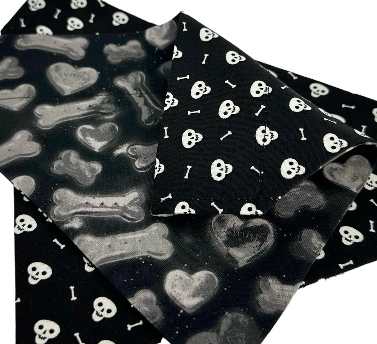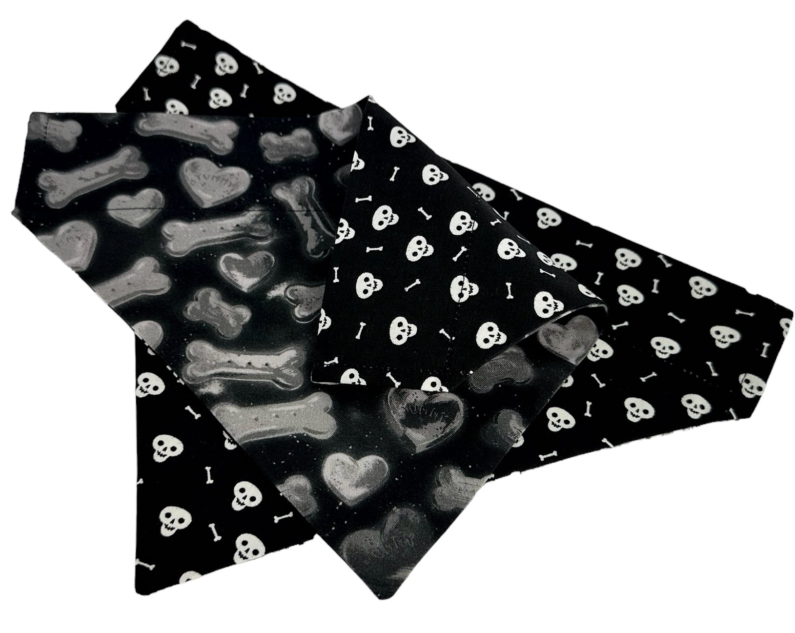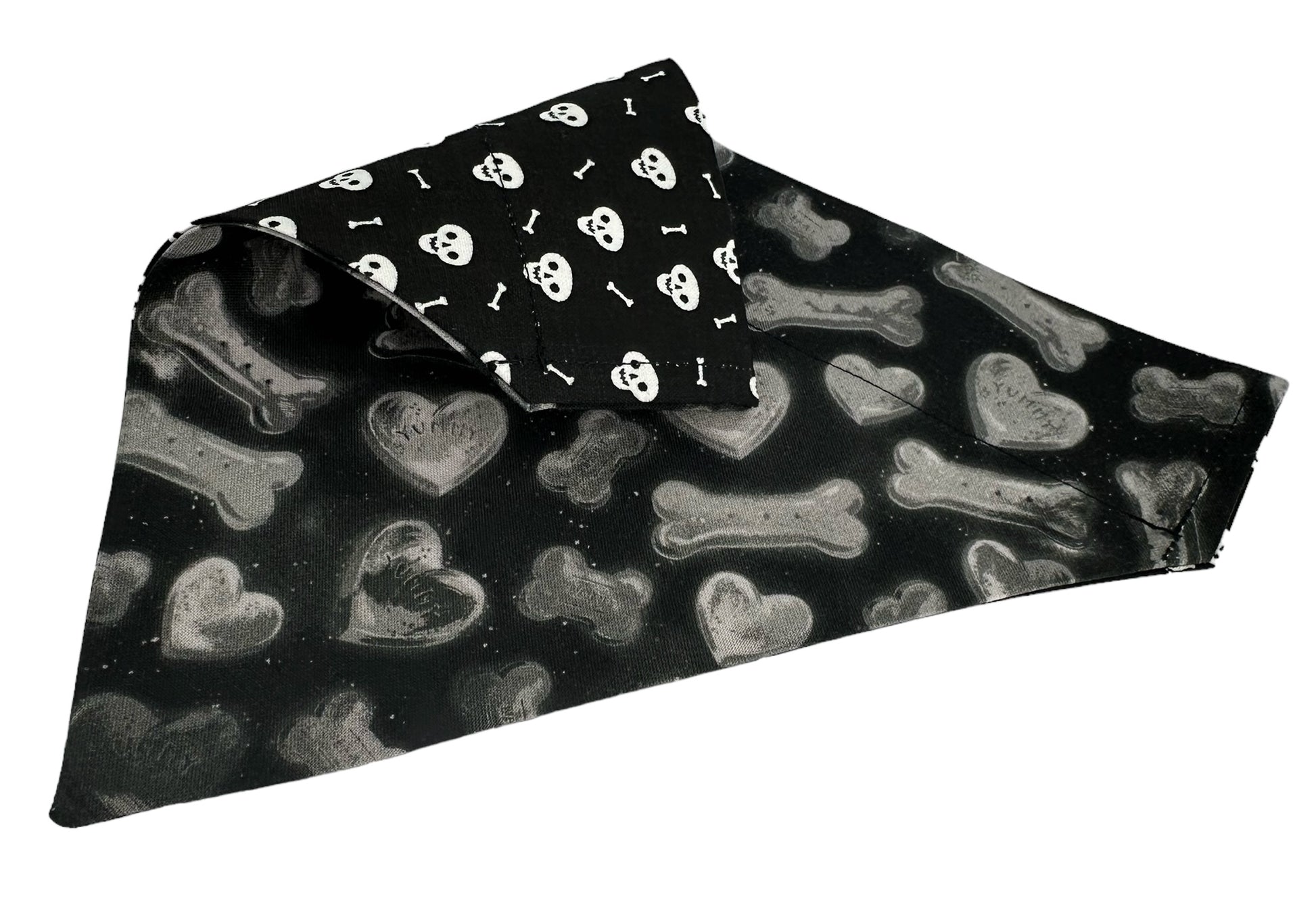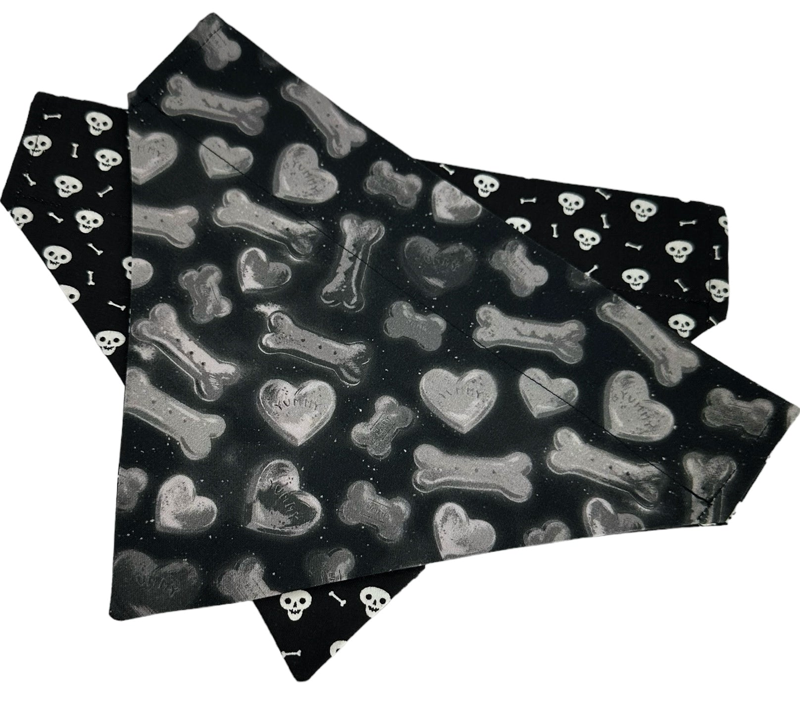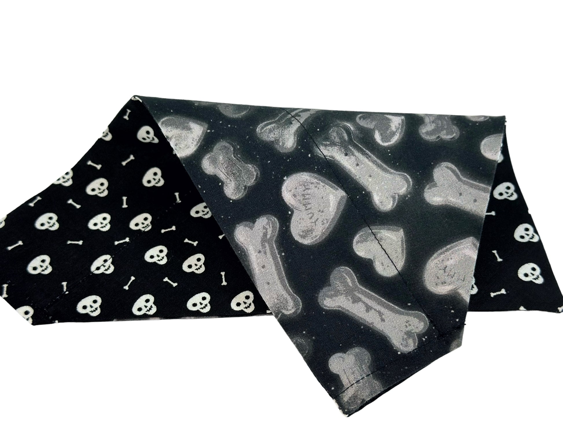 Biscuits and Glow-in-the-Dark Bones Handmade Reversible Slip-on Bandana