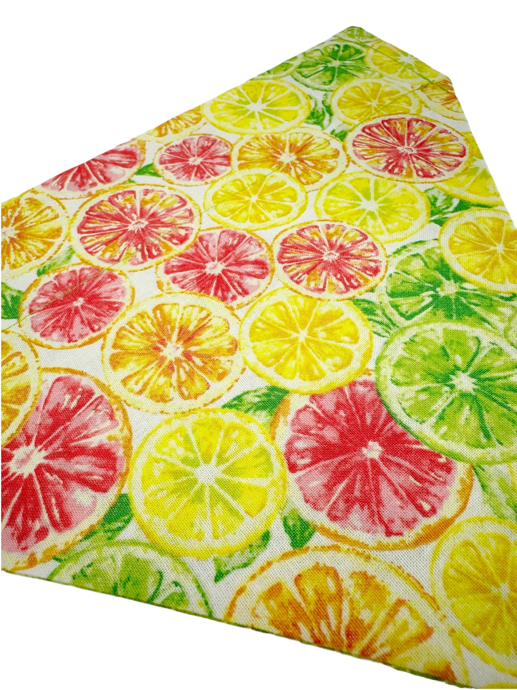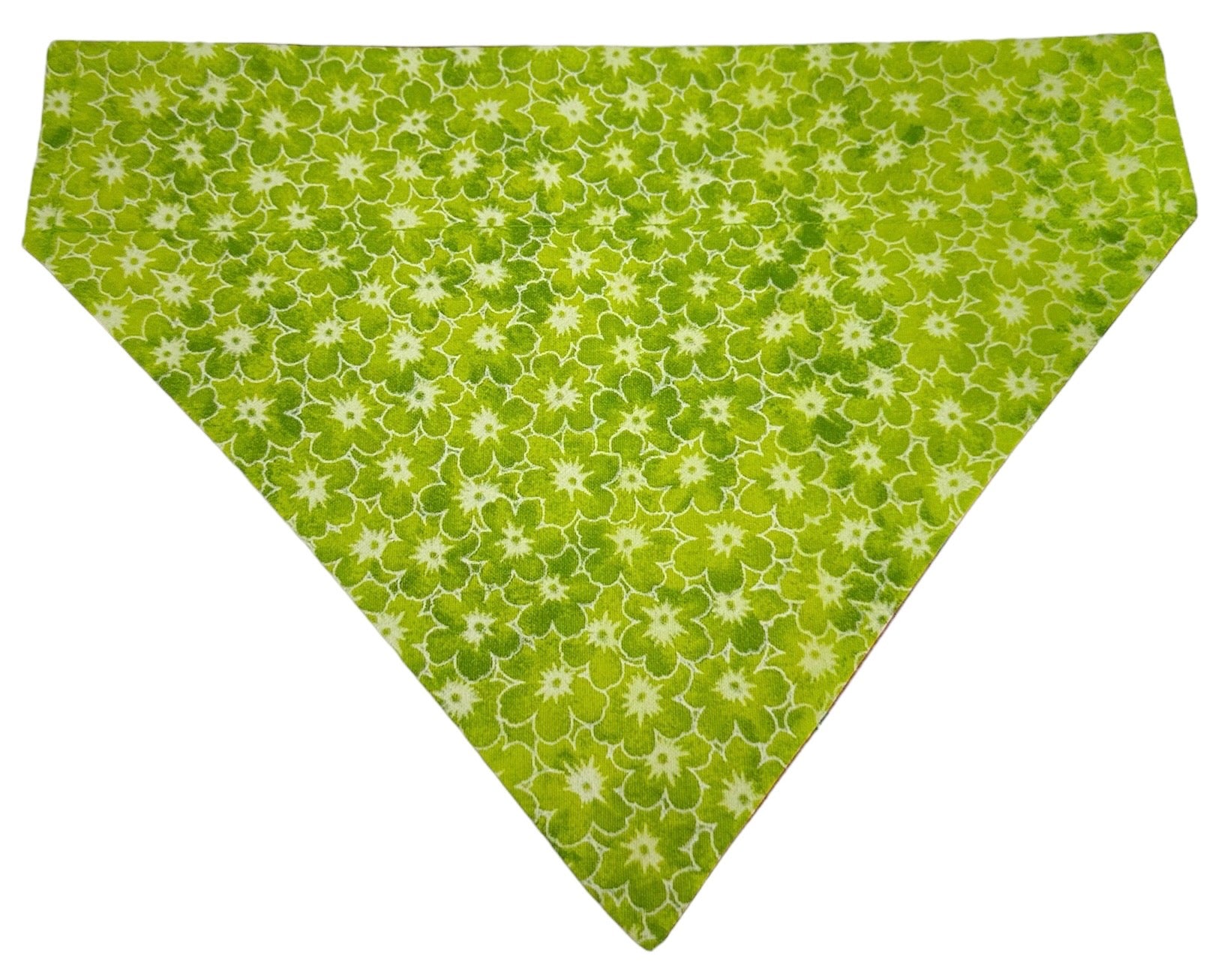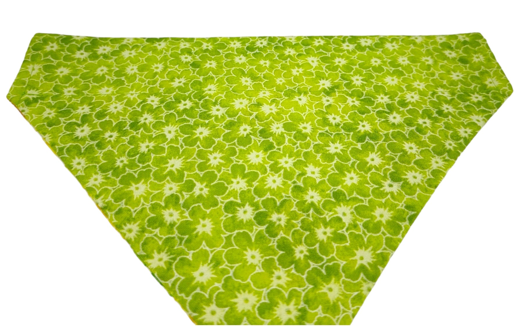 Get groovy with our Citrus and Green Flowers Handmade Reversible Slip-on Bandana! This stylish doggie bandana envokes 70's vibes with its green flower side and summertime fun with its refreshingly cool citrus motif and bright colors on the other. This beauty will surely make your dog stand out from the pack. So go ahead, and add a pop of color and fun to your pup's wardrobe.