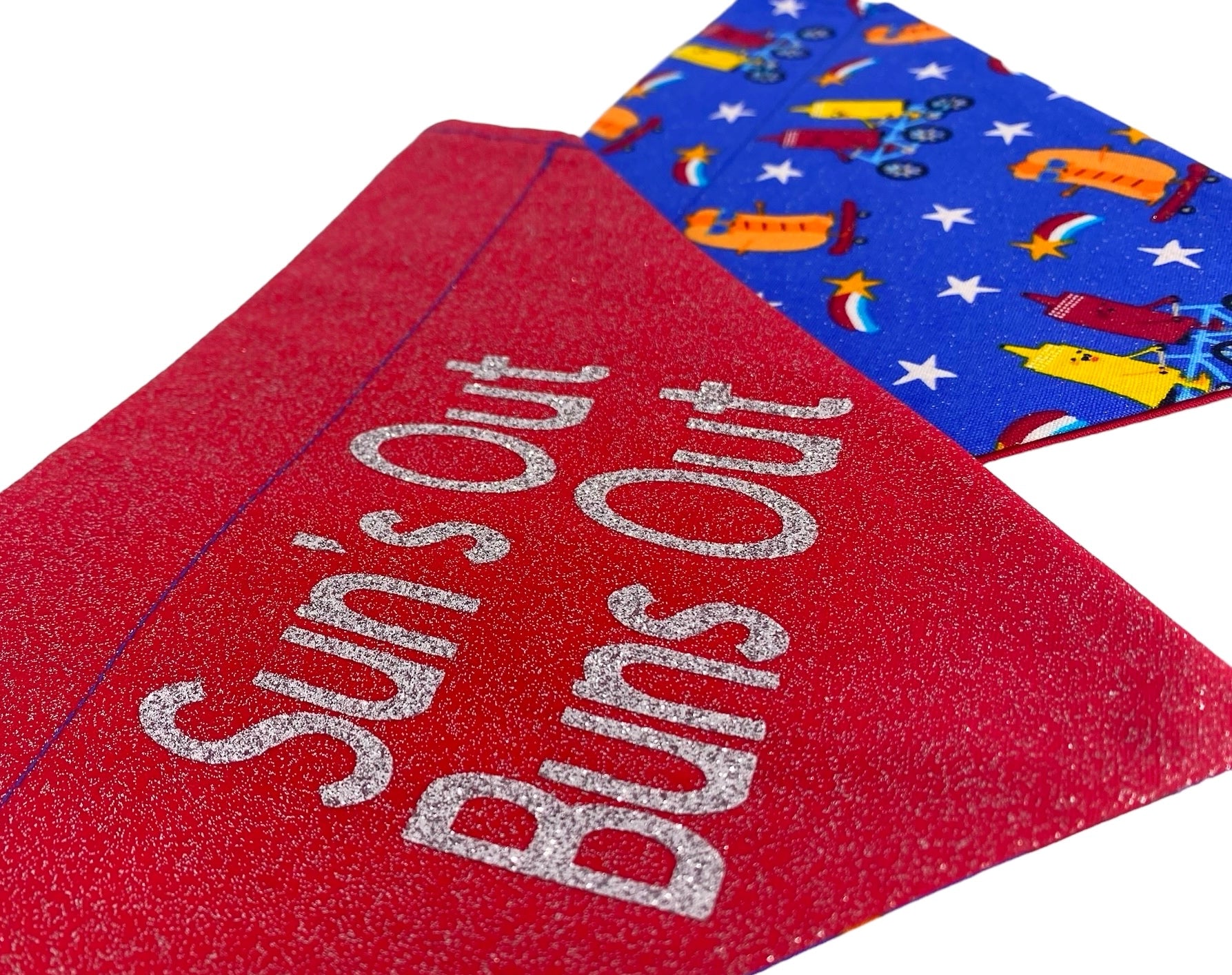 Glitter Sun’s Out Buns Out Handmade Reversible Slip-on Bandana