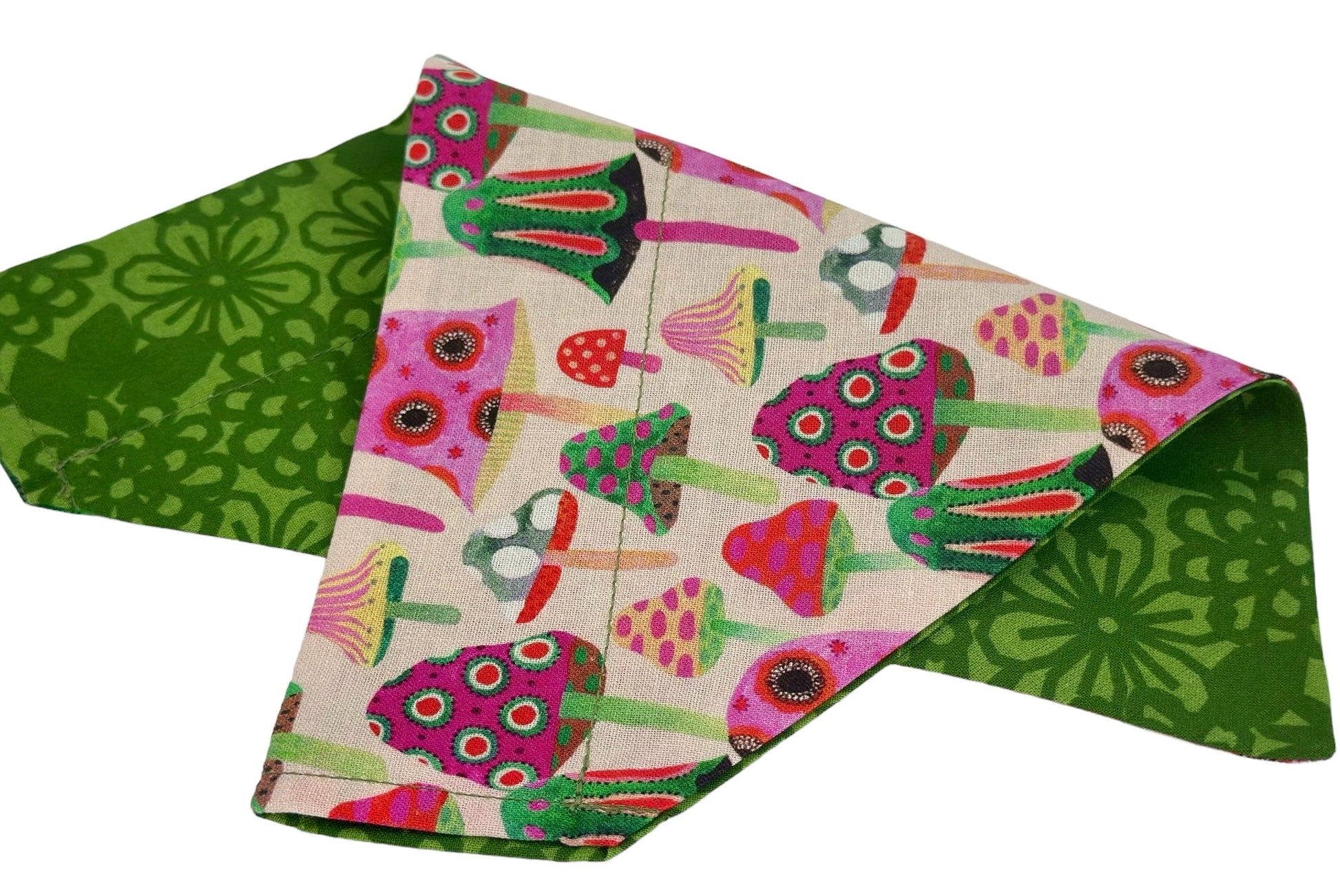 Mushrooms and Flowers Handmade Reversible Slip-on Bandana