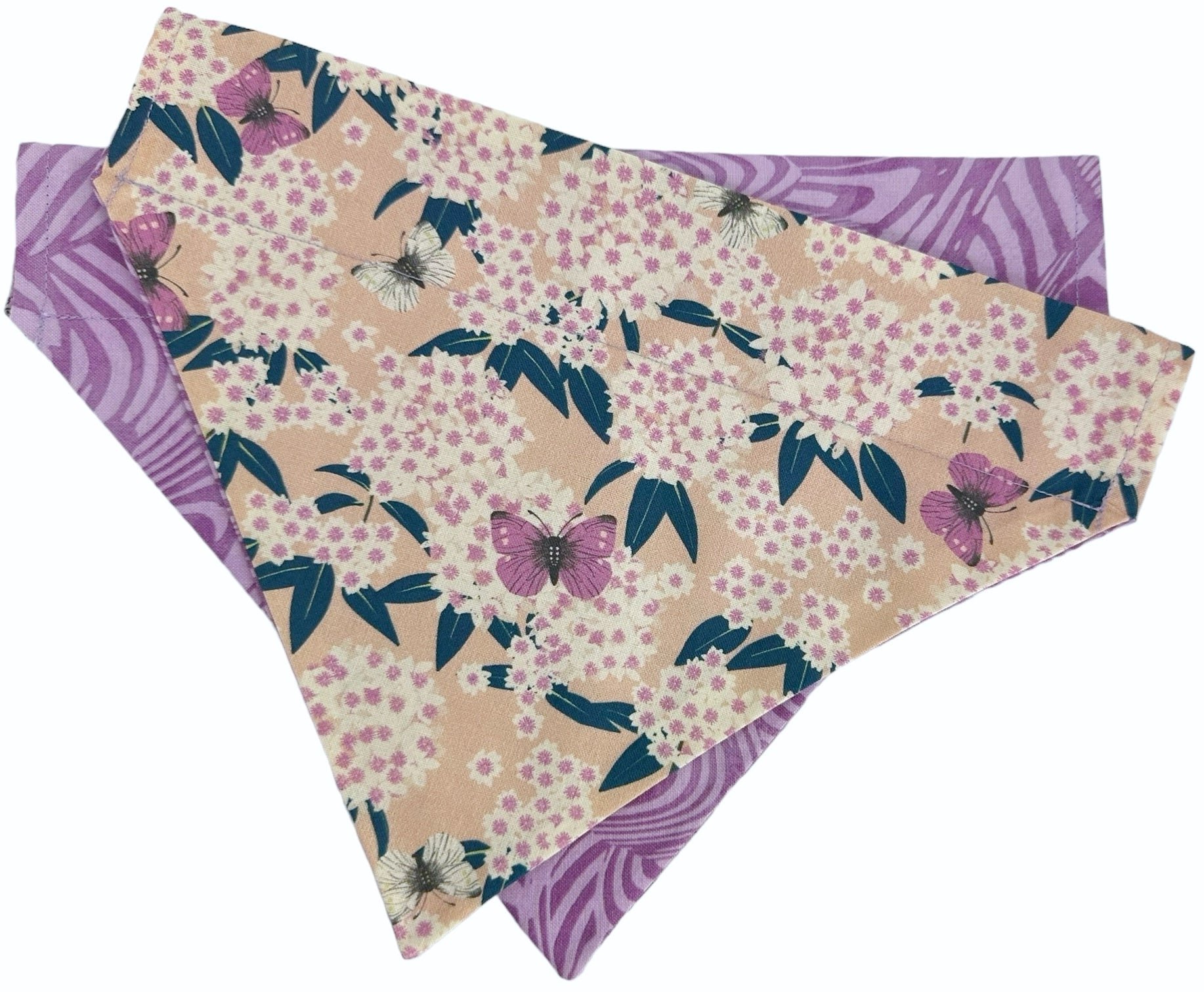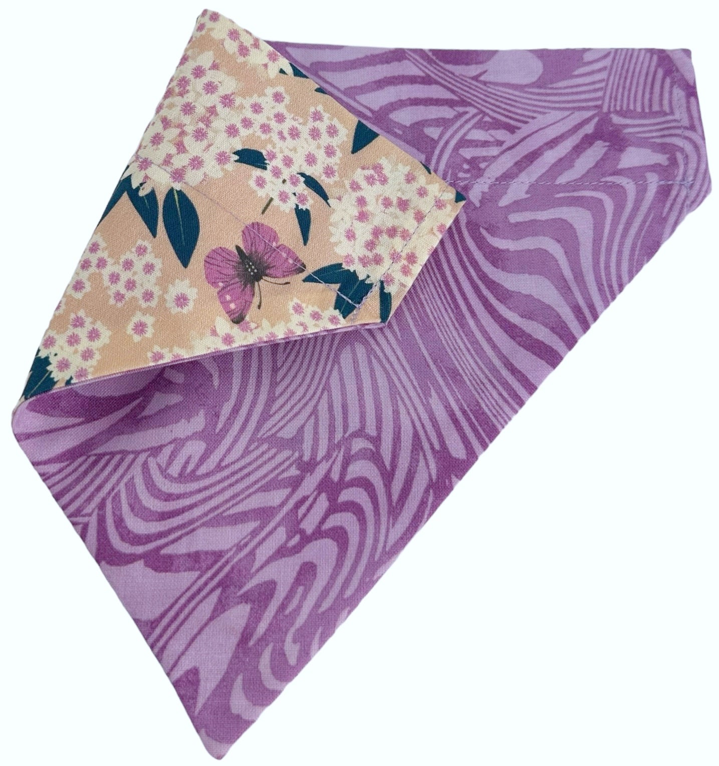 Butterflies and Purple Marble Handmade Reversible Slip-on Bandana