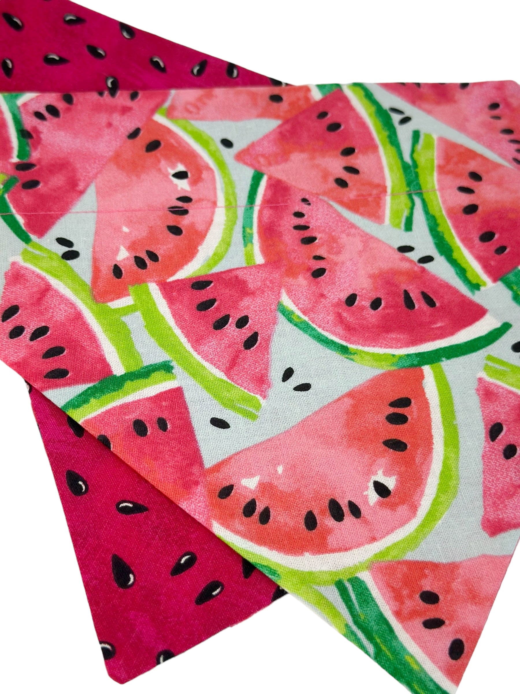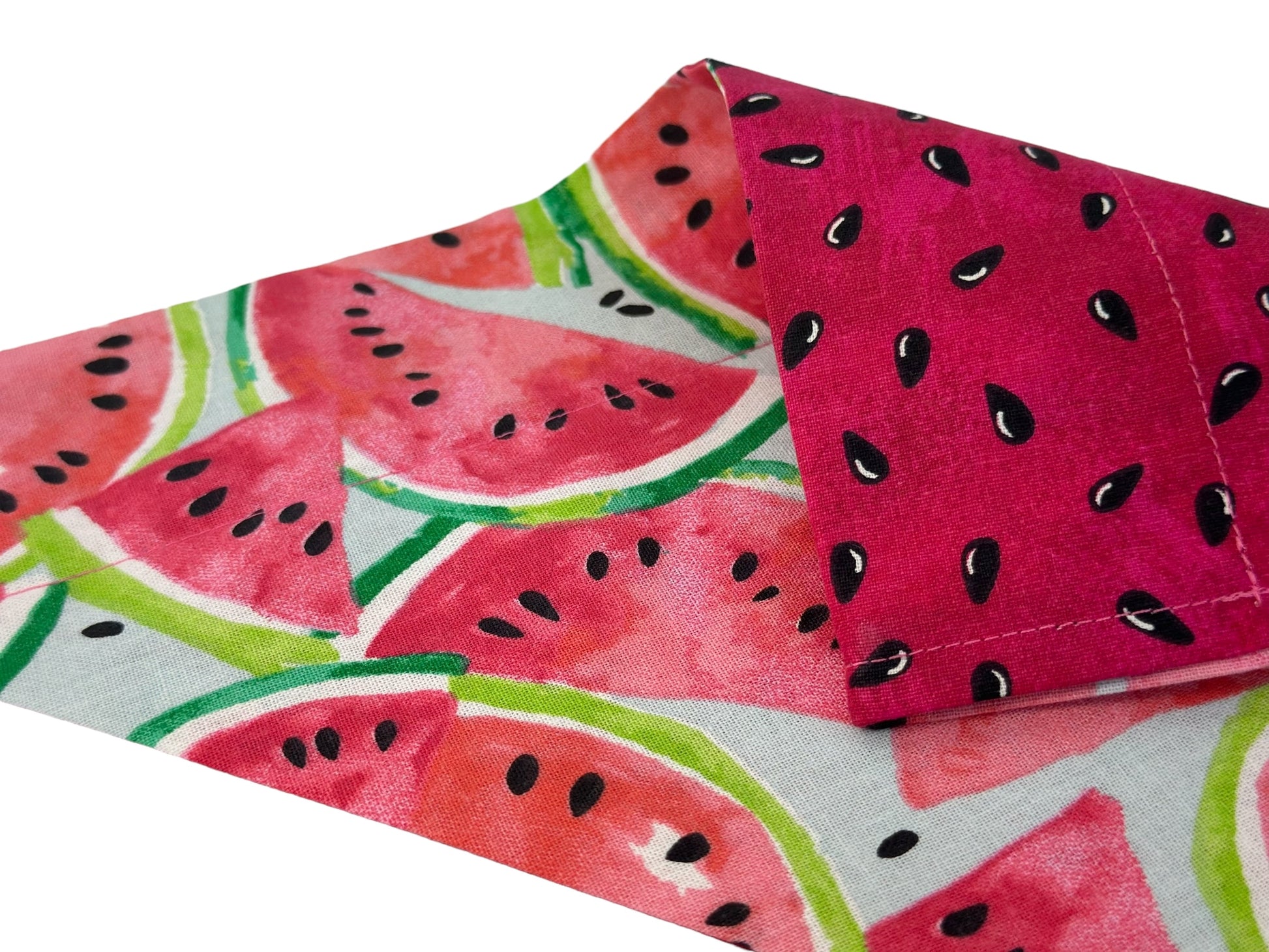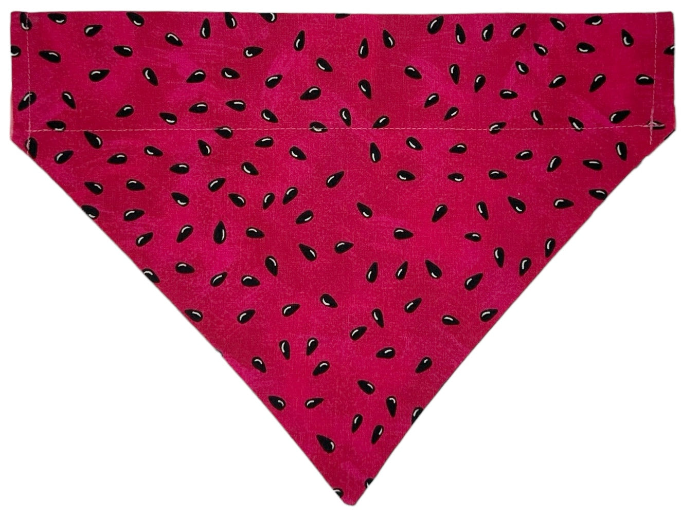 This Watermelon Handmade Reversible Slip-on Bandana is a must-have for your furry friend this summer! Made with 100% cotton and hand-sewn, this quality bandana is both stylish and fun. A perfect accessory for any dog, with its reversible design and double watermelon pattern.