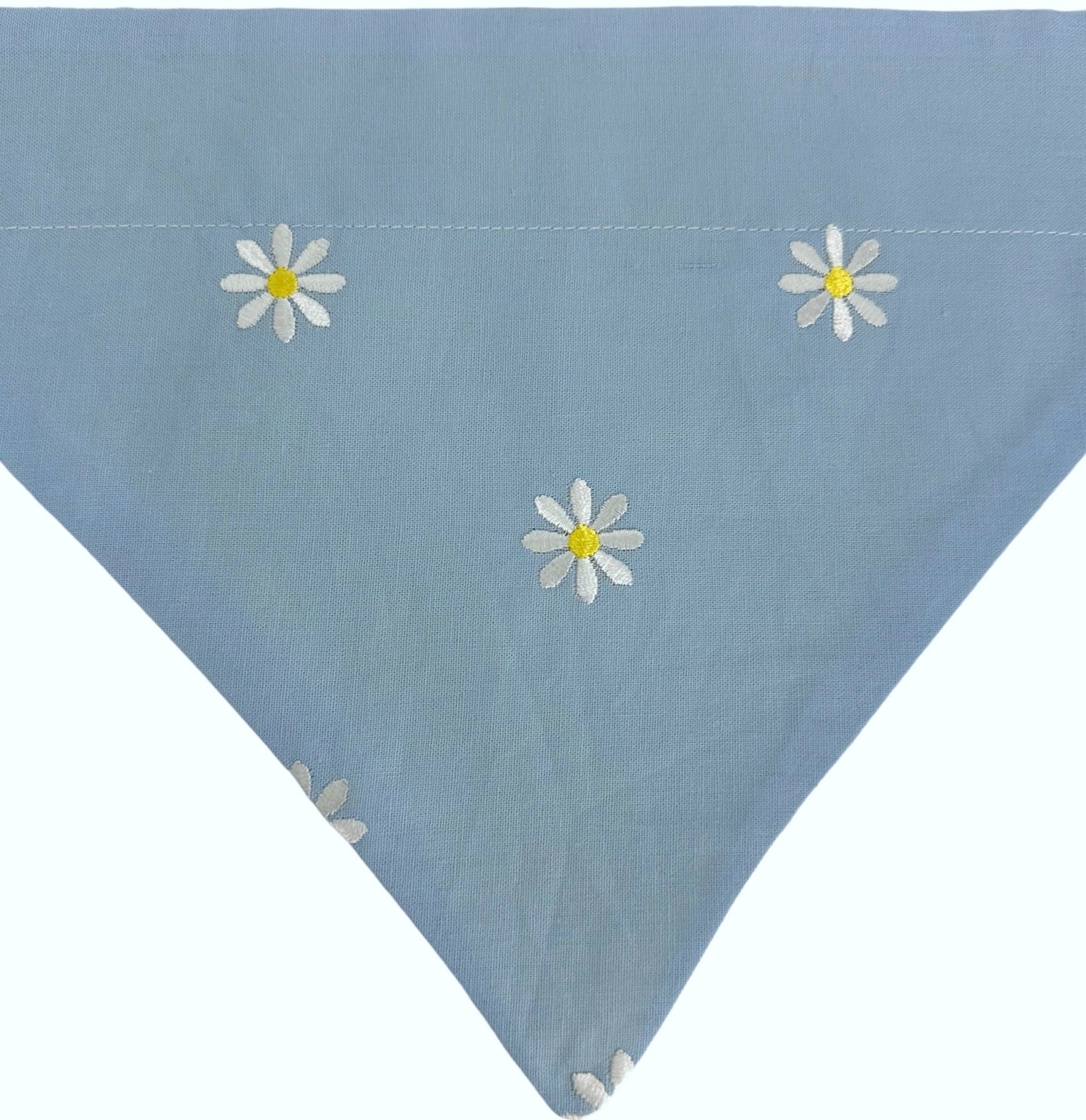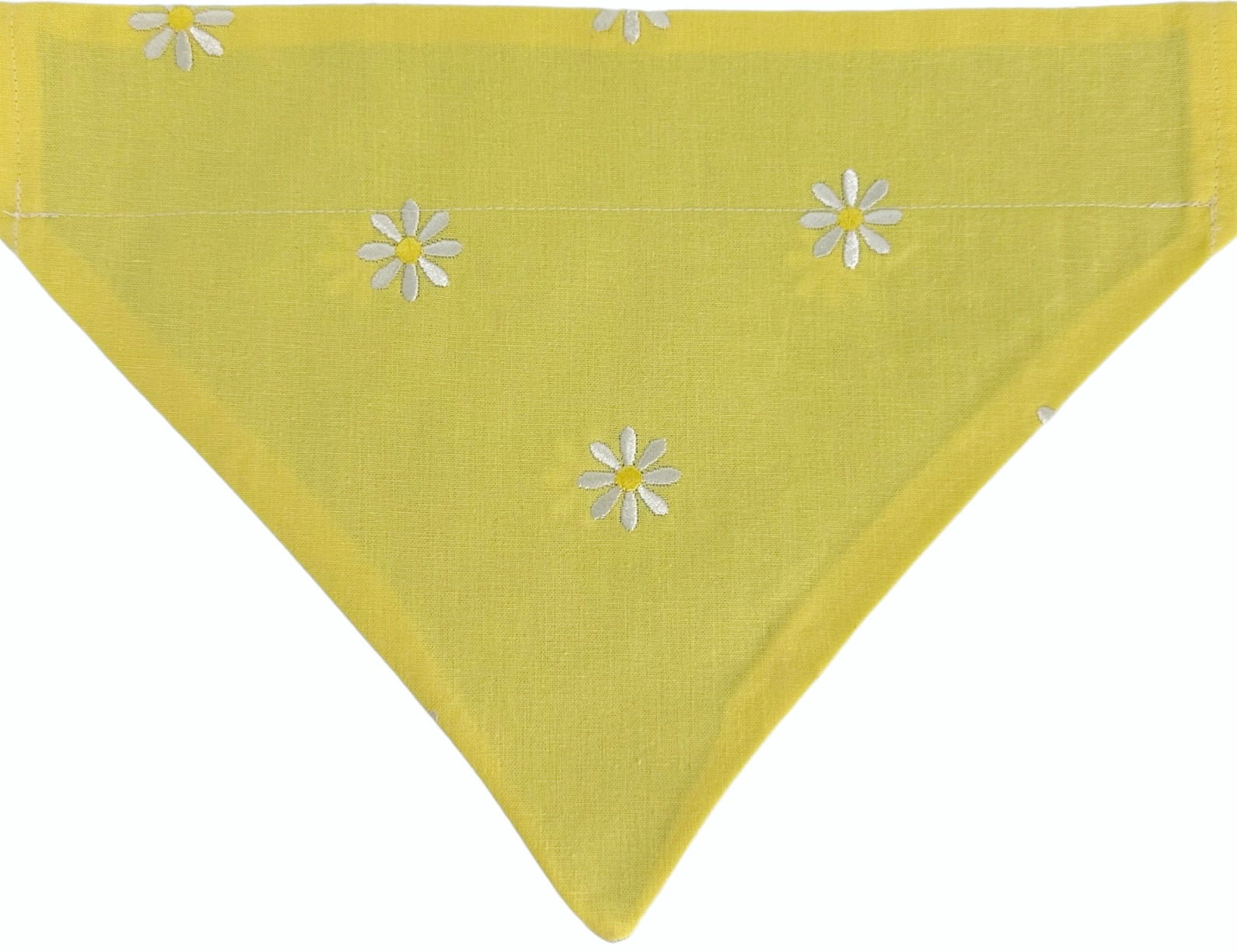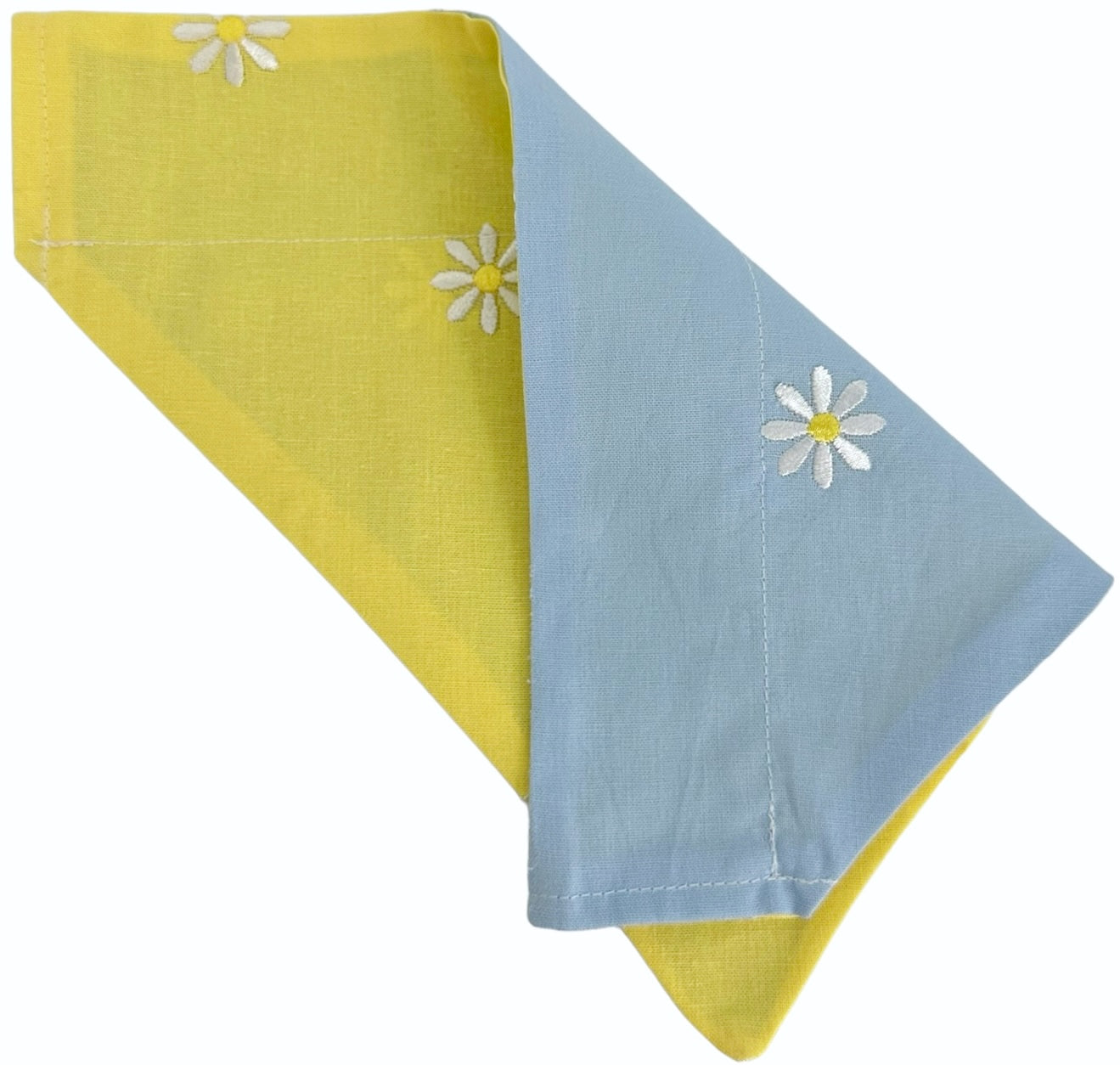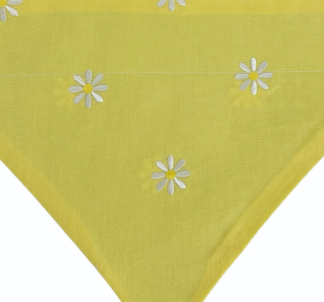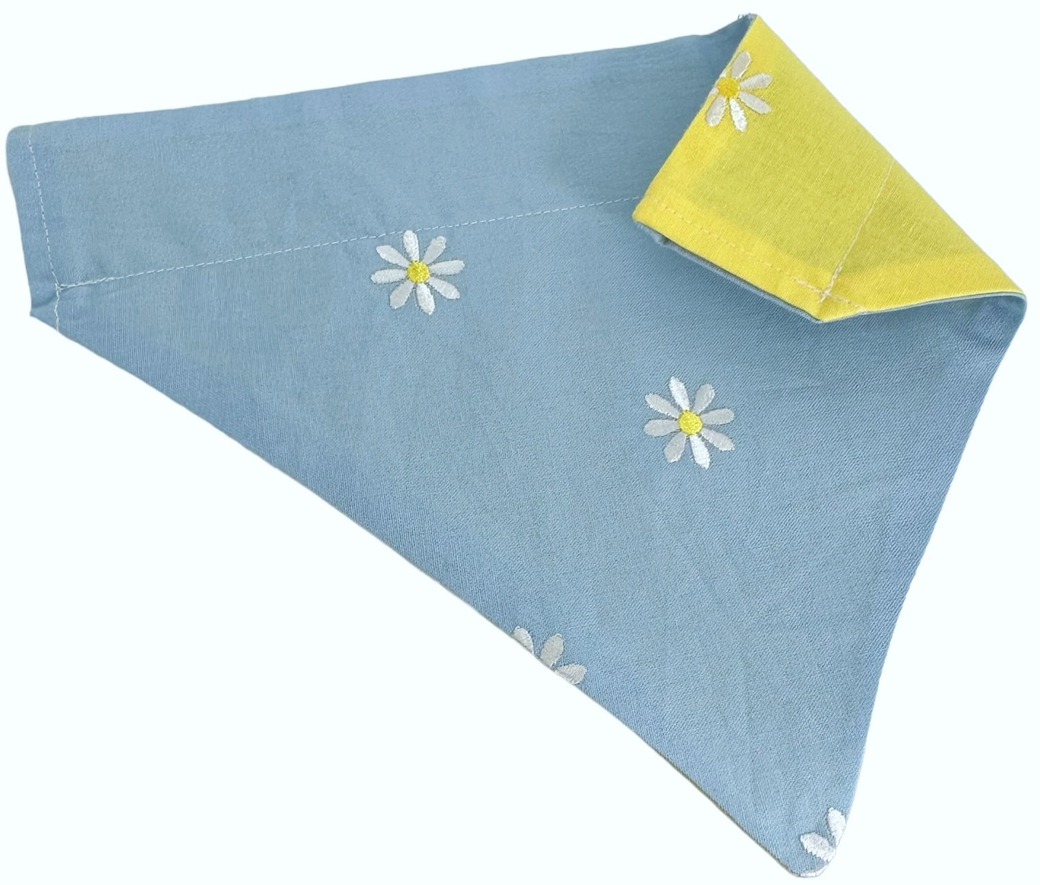 White Embroidered Daisies on Yellow and Blue Handmade Reversible Slip-on Bandana