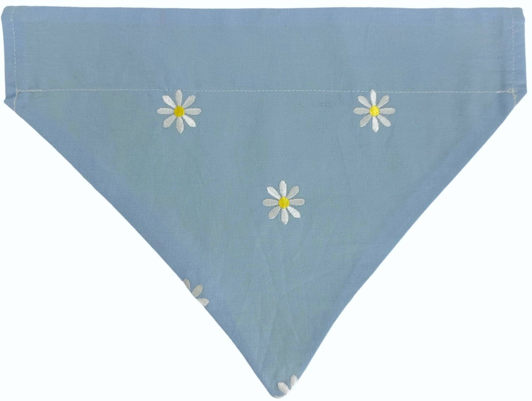 Let your pup bloom with our White Embroidered Daisies Bandana! Perfect for summer fun, this reversible slip-on accessory is made with 100% cotton and handcrafted with love. Your furry friend will be the cutest doggo in the park!